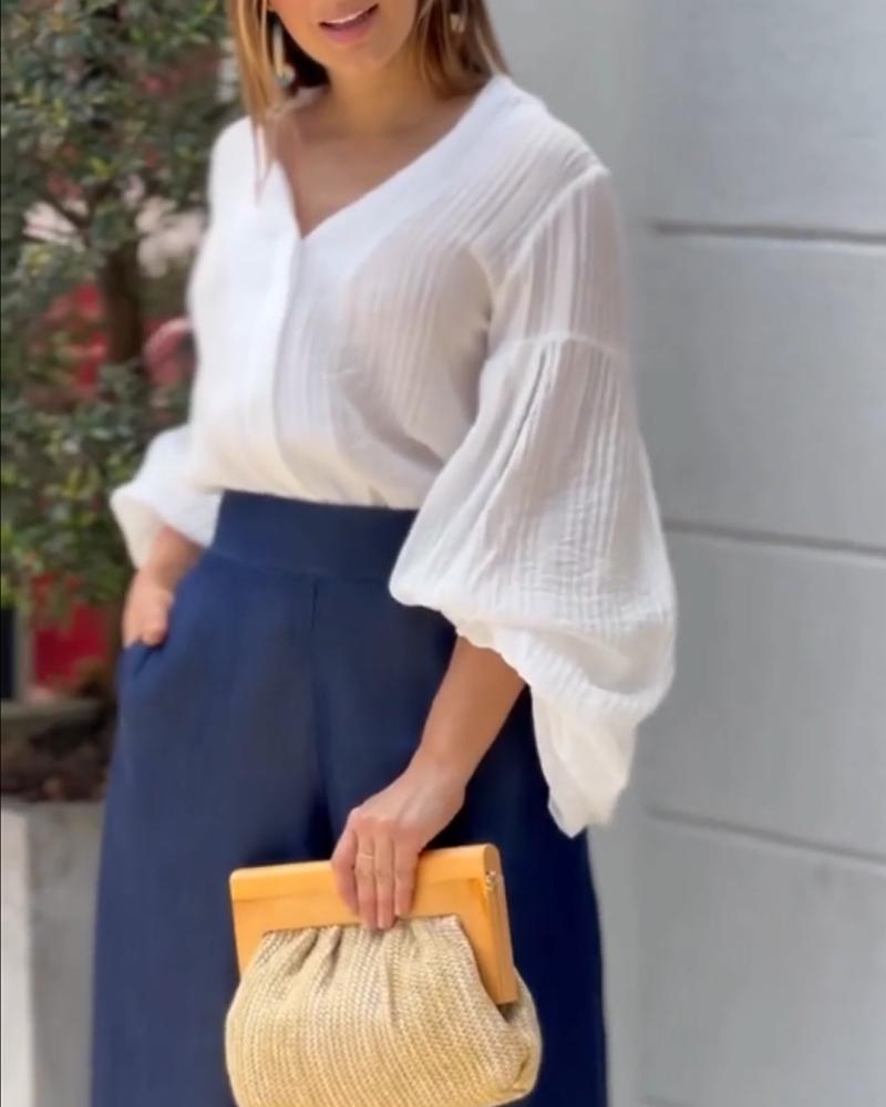 | Product Name | Bubble Sleeve Shirt Top Pants Suit |