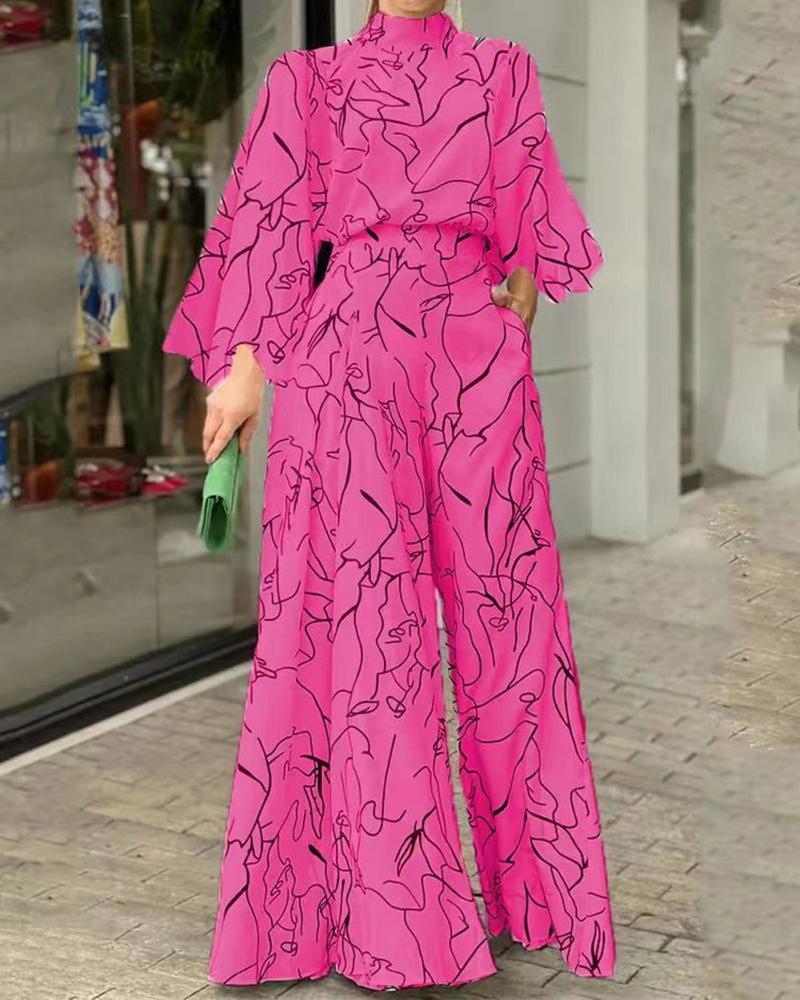Product Name:Long Sleeved Abstract Print Art Jumpsuit