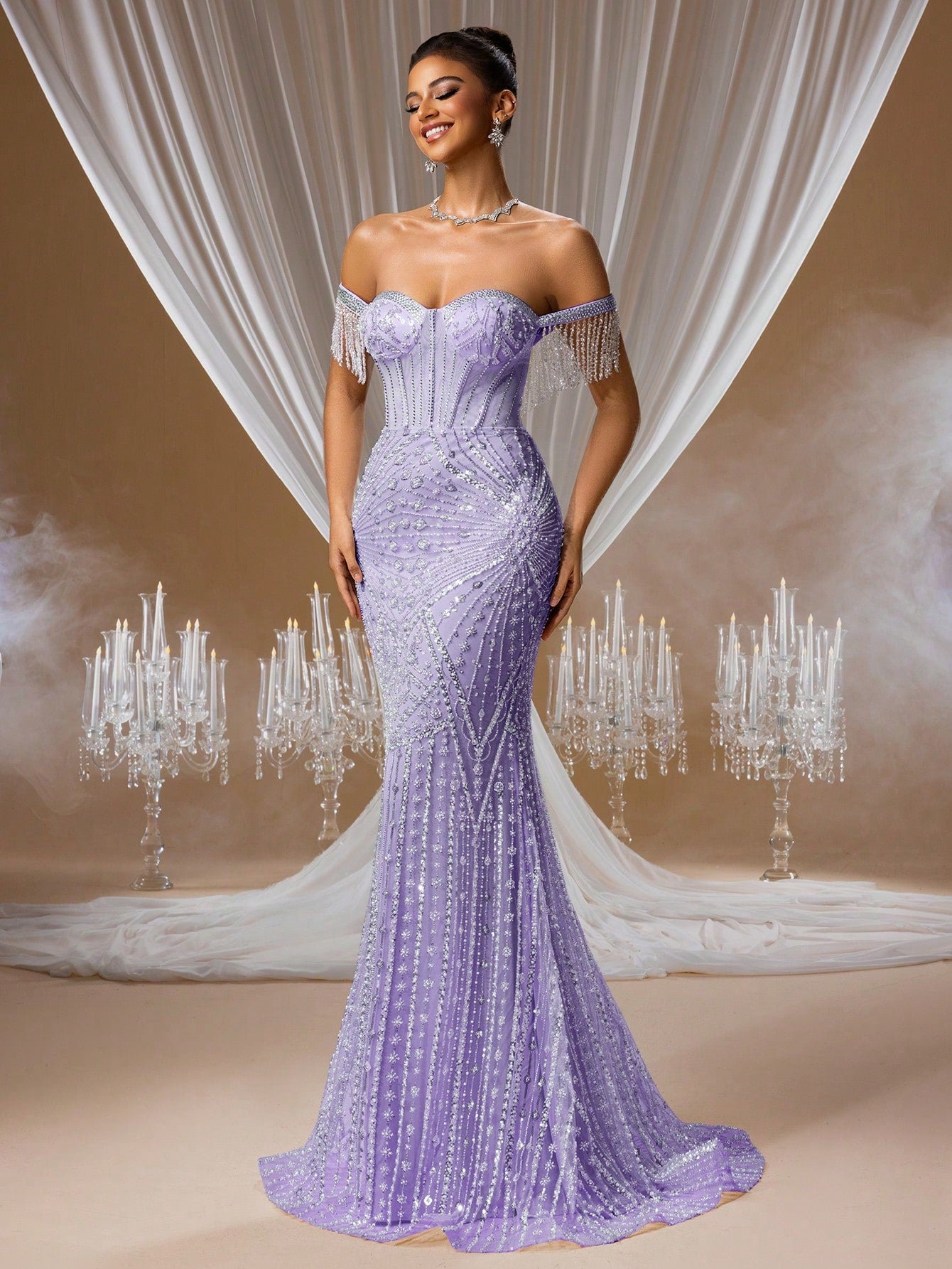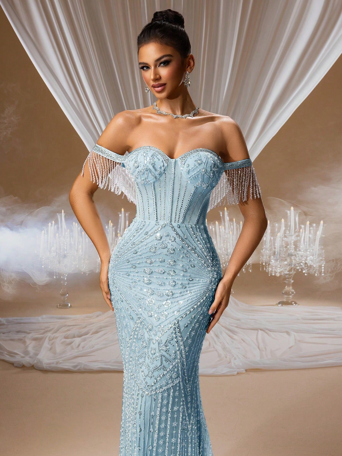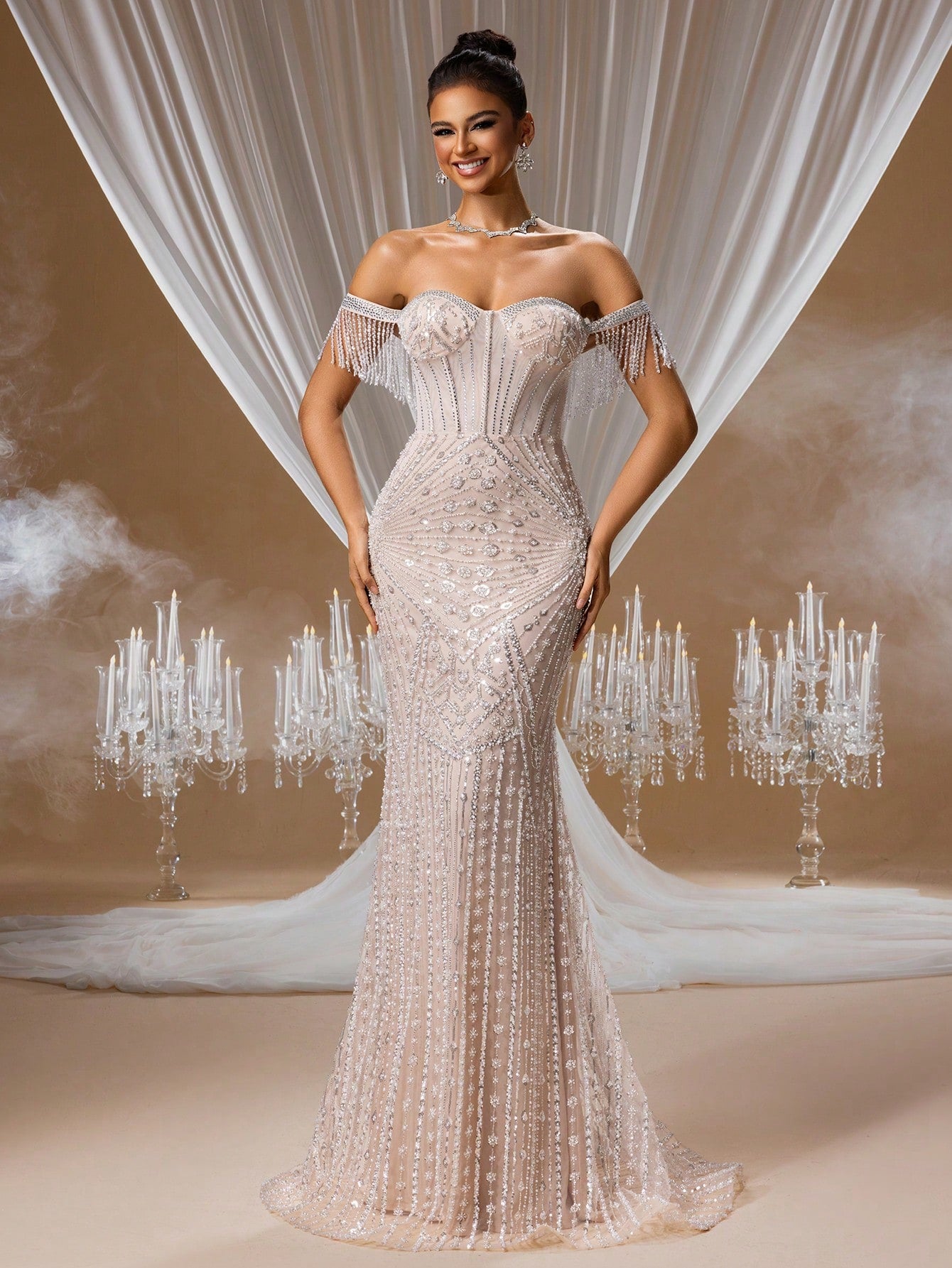 Luxury Red Carpet Evening Gown and Wedding Guest Ball Dress with Stunning Beaded Elegance, Perfect for Galas and Formal Events