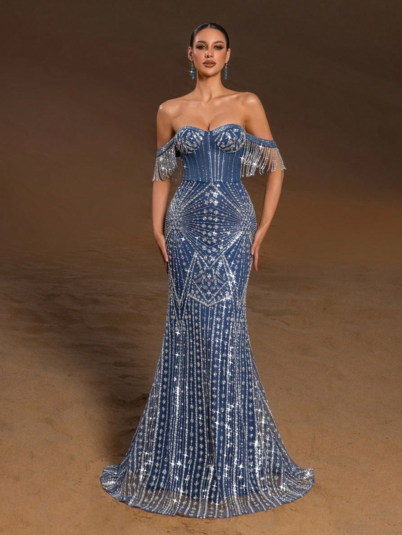 Increase quantity for Luxury Red Carpet Evening Gown and Wedding Guest Ball Dress with Stunning Beaded Elegance, Perfect for Galas and Formal Events