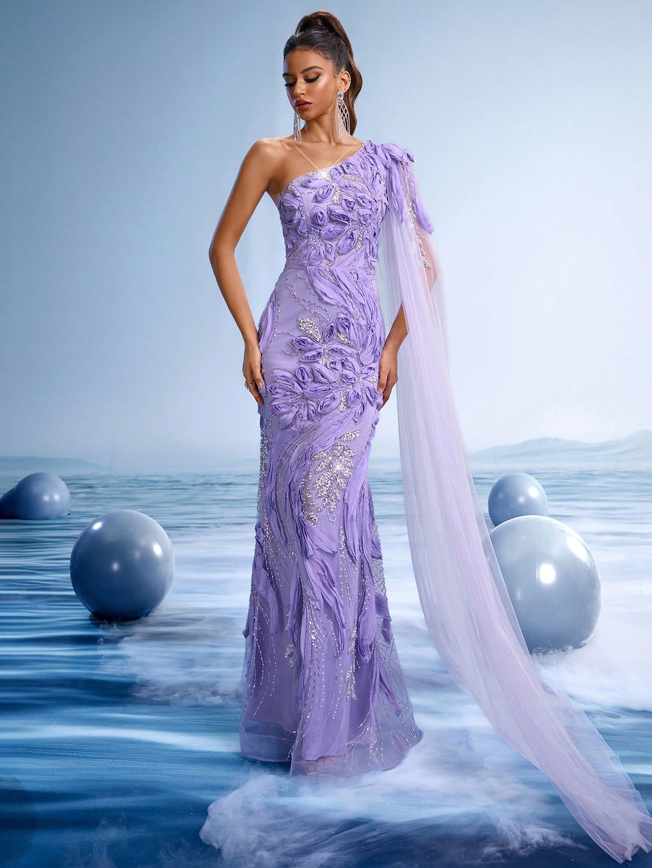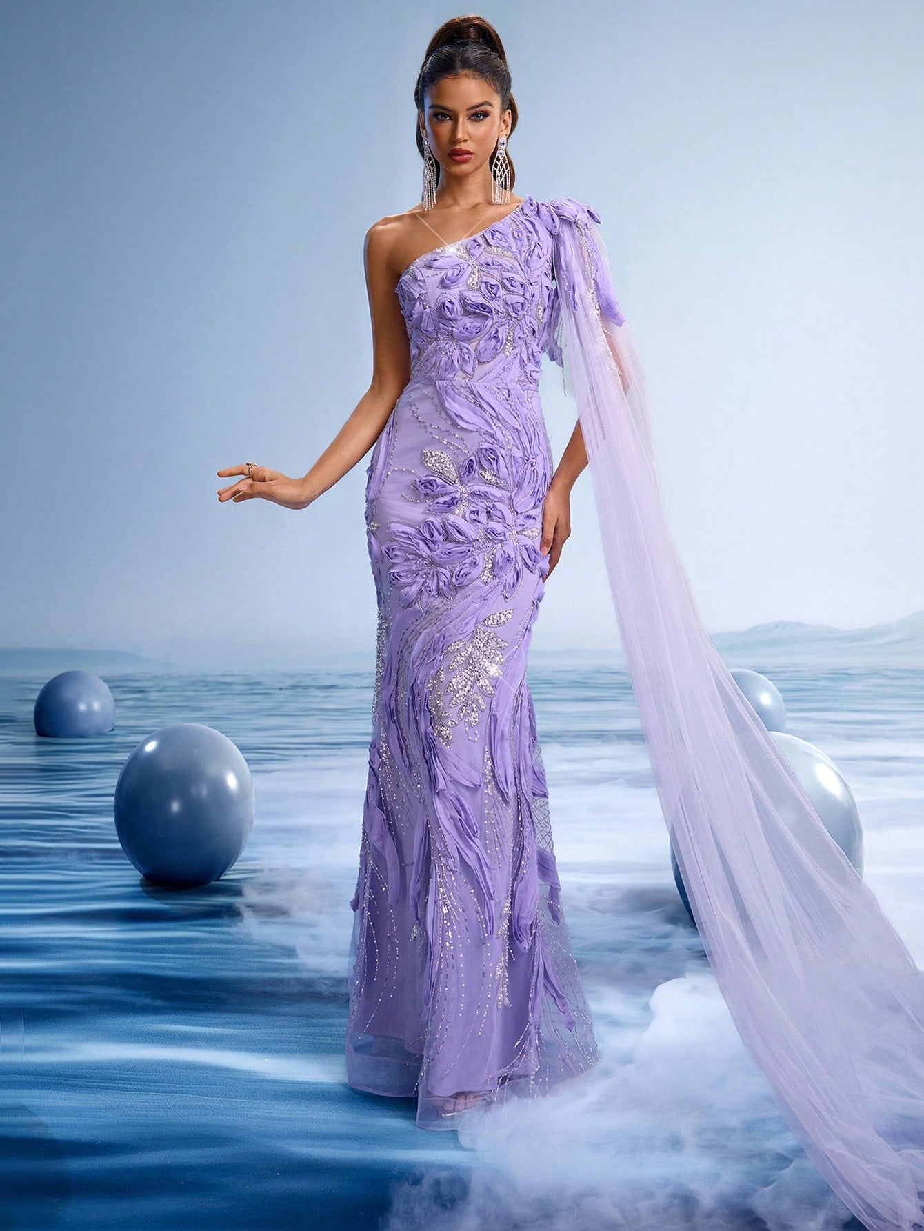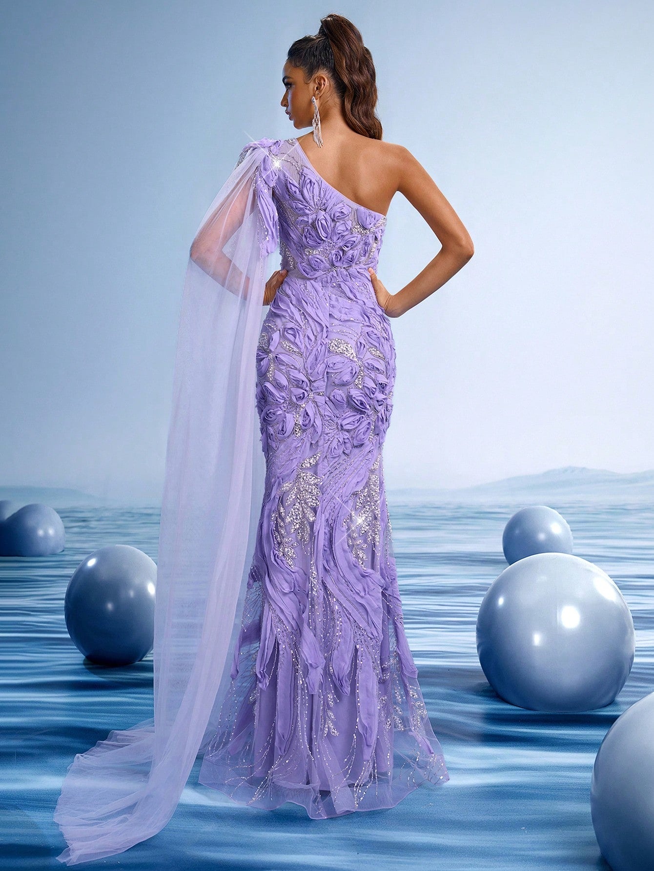 Increase quantity for Luxury Lavender One-Shoulder Evening Gown