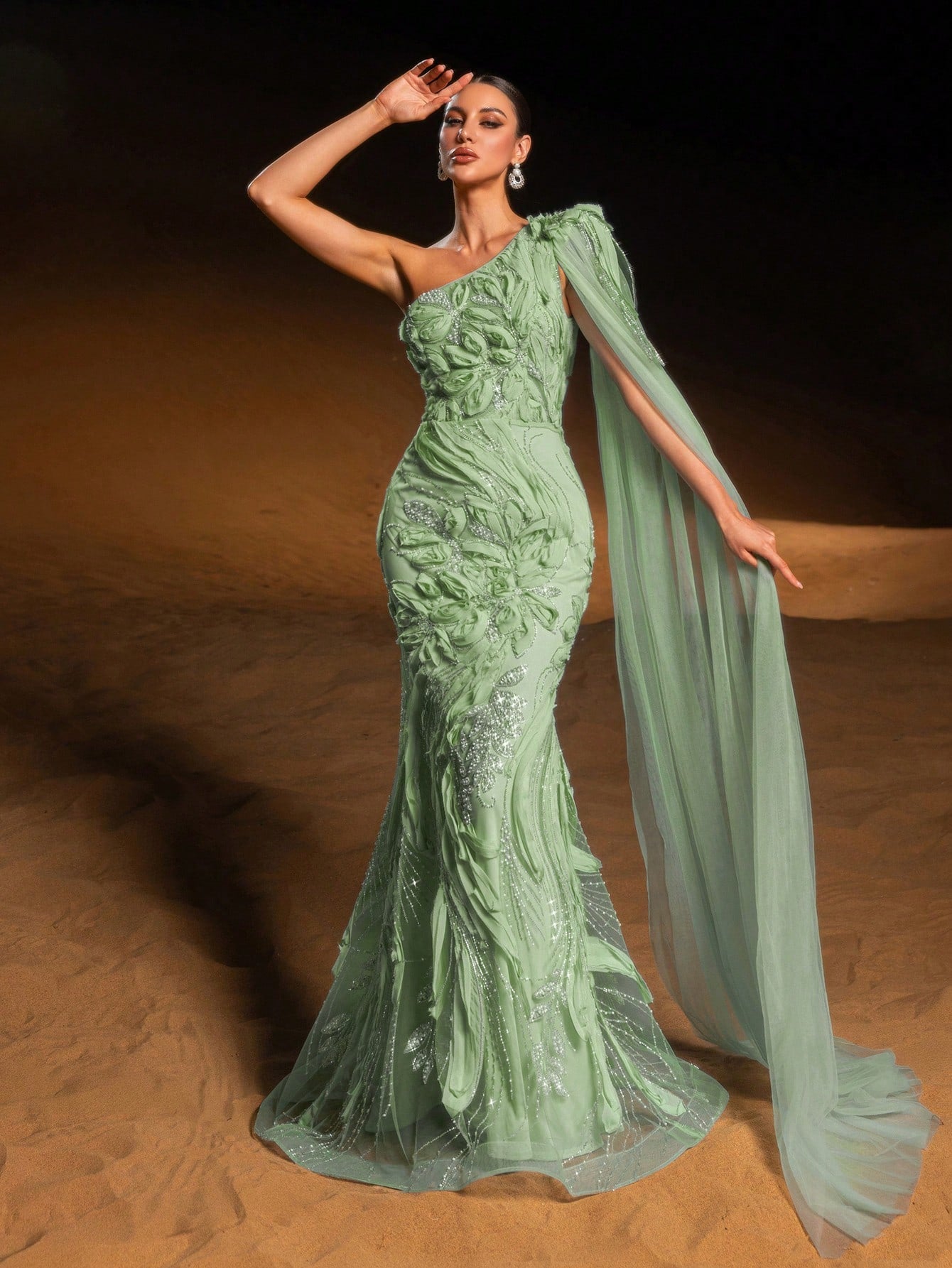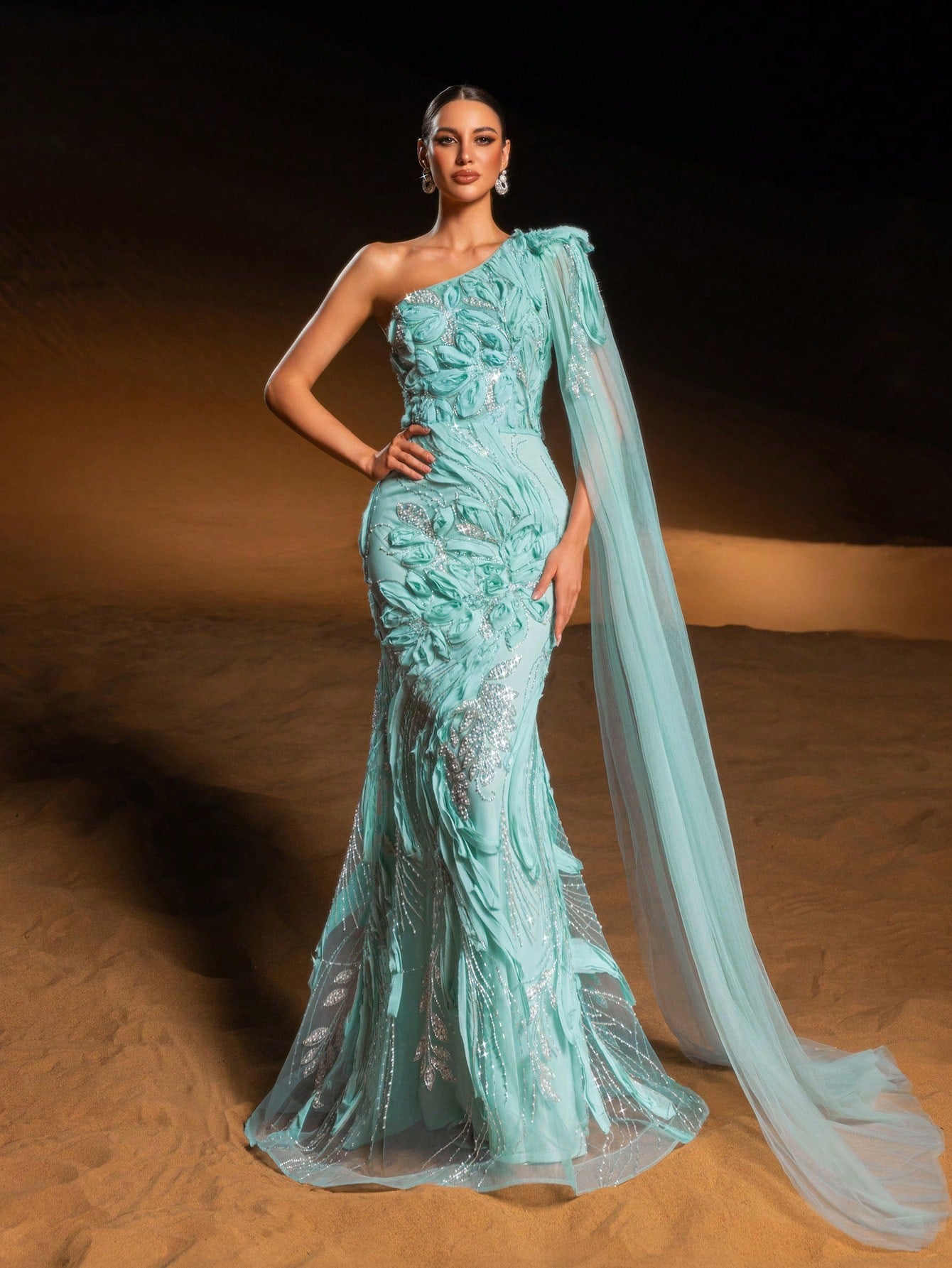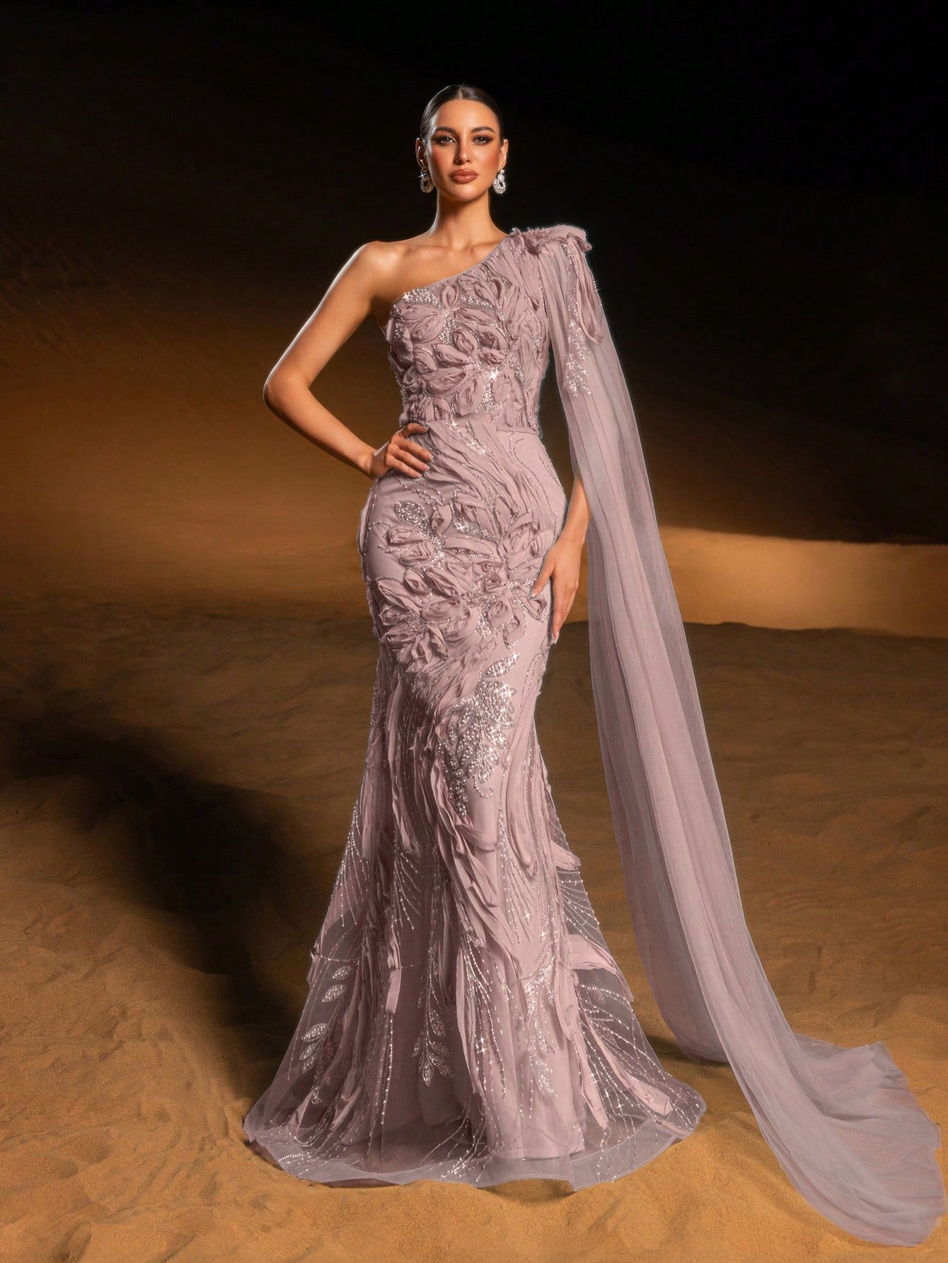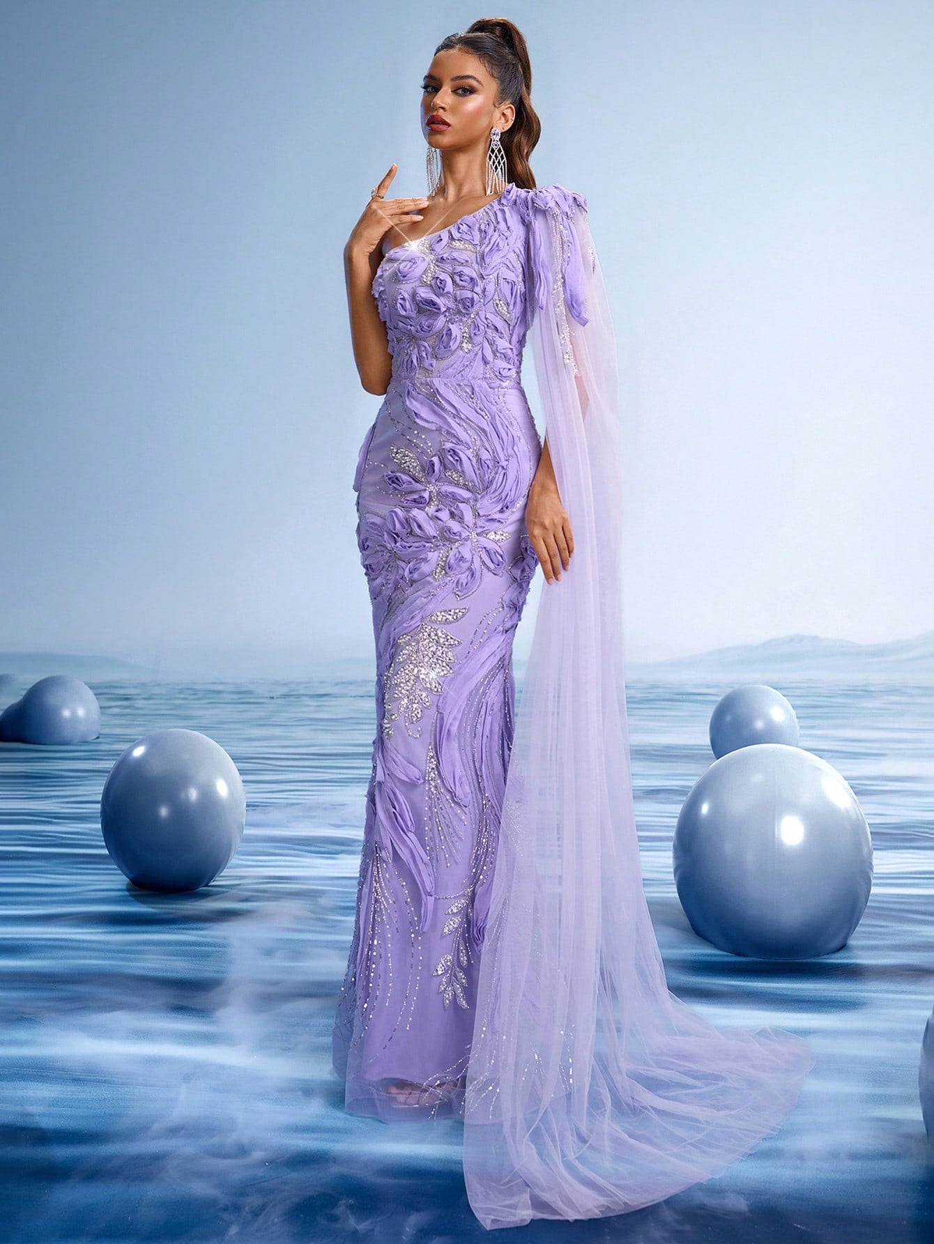 Increase quantity for Luxury Lavender One-Shoulder Evening Gown